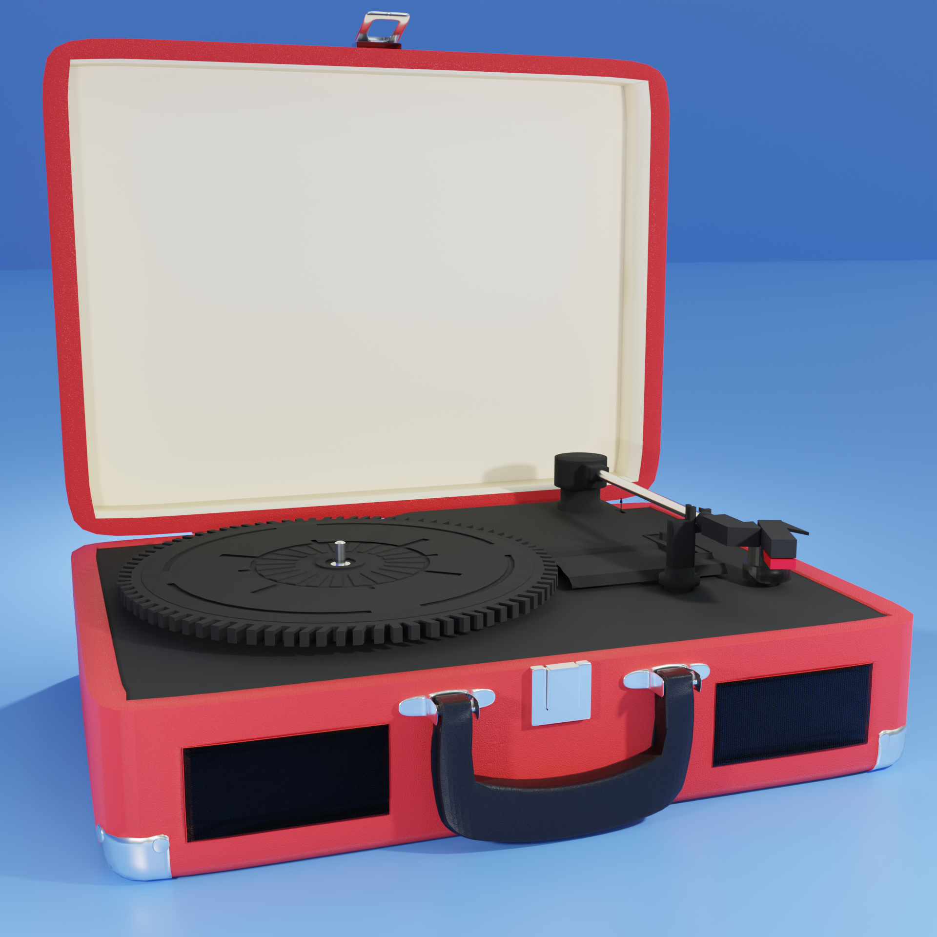 This is a model of my record player, which is one of the ones that comes in a case with built in speakers. It took me a few days and I modelled and textured each of the components. I also lit and rendered these images below.